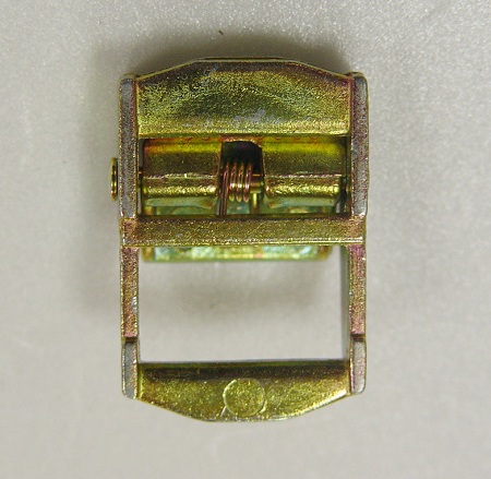 This spring loaded cam buckle is used with 1 inch webbing. It is made of zinc alloy and with yellow zinc plated surface treatment. The breaking strength is 550lb. If you see a cam buckle you need, we can manufacture the specification as you request.