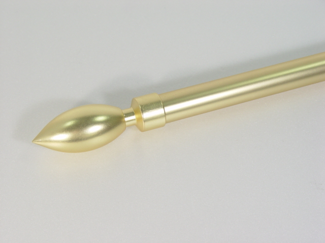 This finial is made of zinc alloy and suitable for 1/2", 5/8" & 3/4" (13mm, 16mm, 19mm) curtain rod. Its color is gold as show on the picture. Beyond our standard finishes, we accept samples provided by the customer and produce curtain finial as requested.