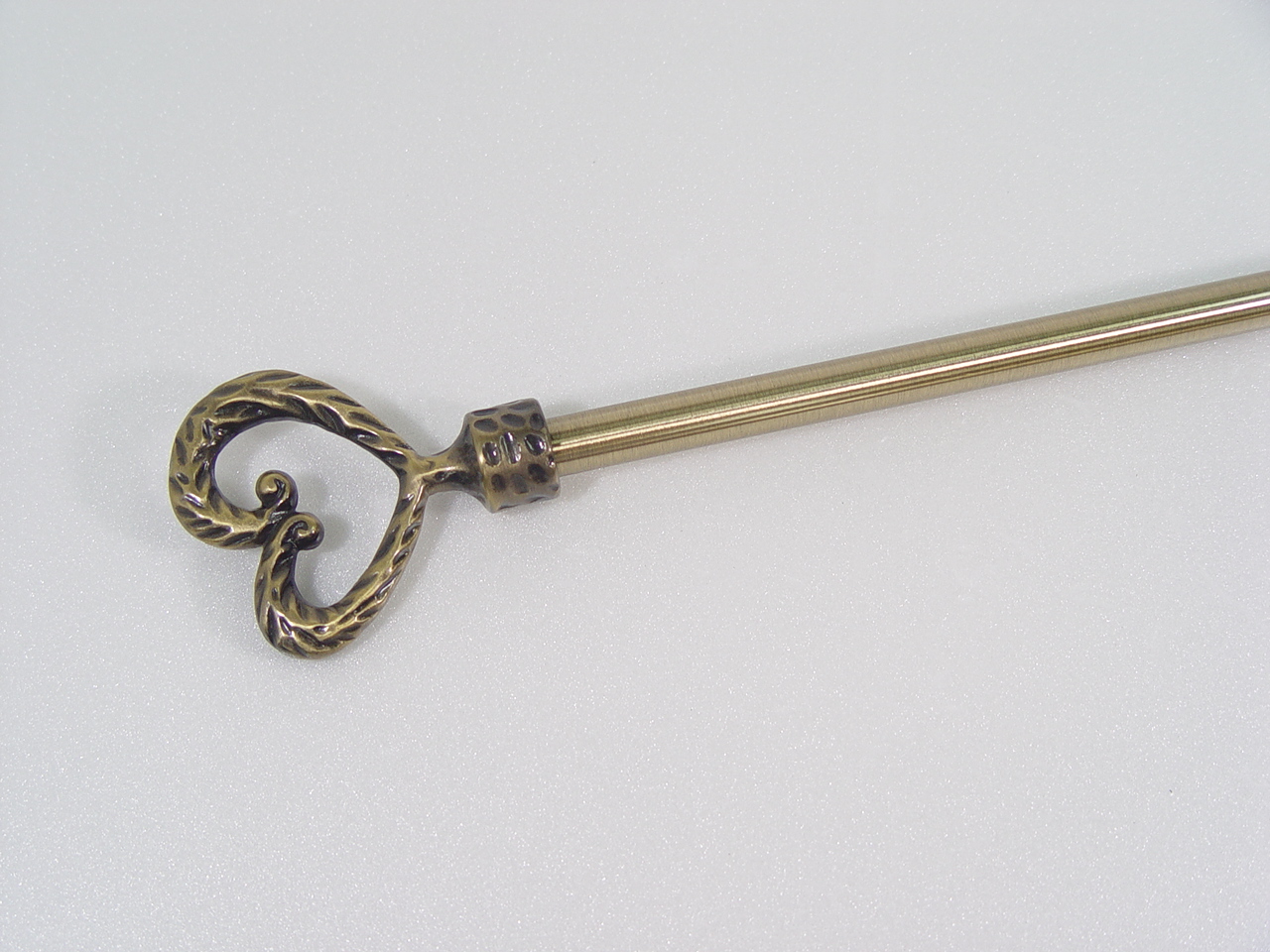 Its tooling was designed with shaved shape. When this finial is cast, the surface has the special look already. Besides heart shape design, it is also available in rhombus shape. Fits for 1/2", 5/8"/13mm, 16mm diameter curtain rod.