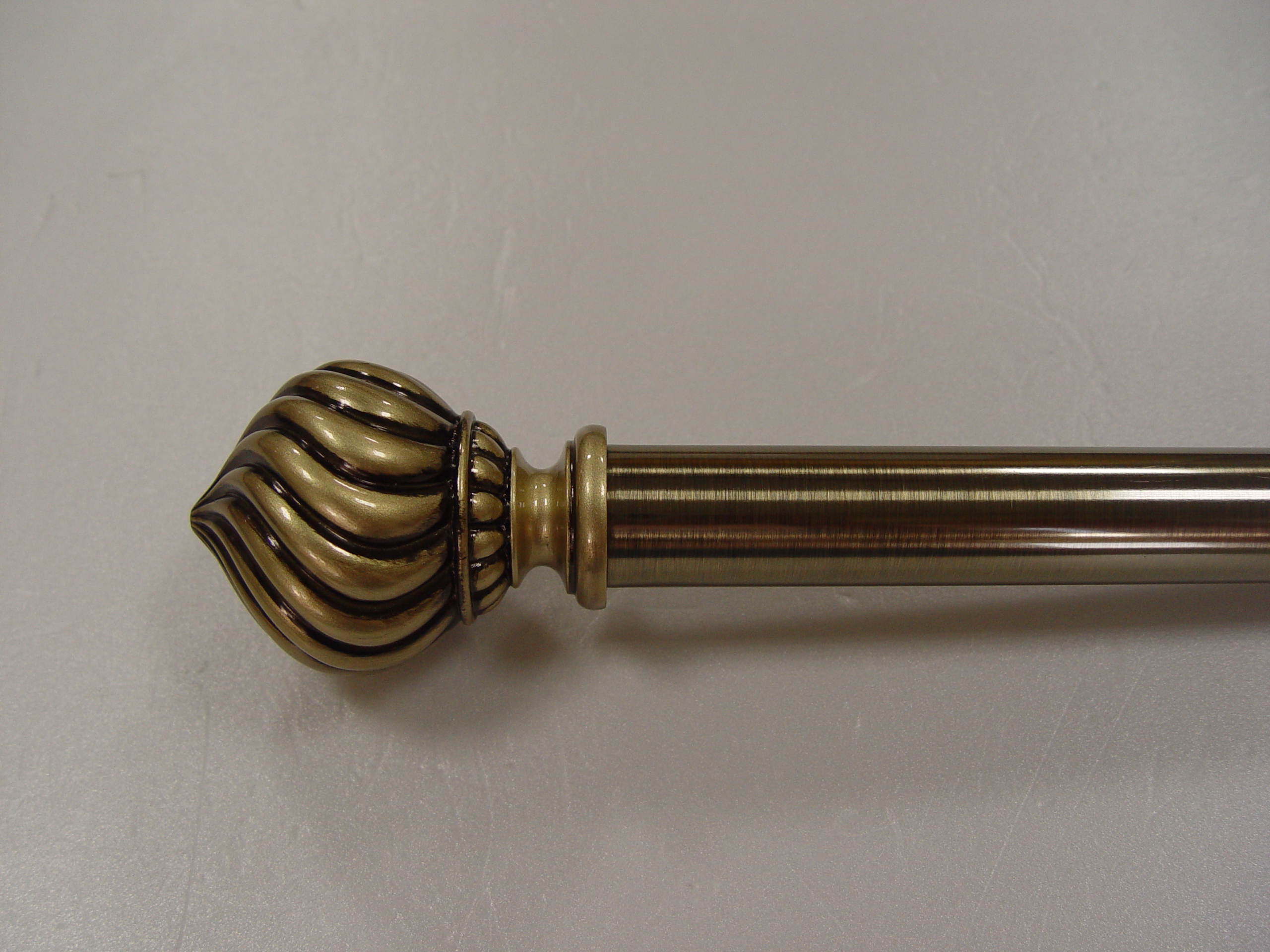 This onion dome curtain finial has a spiral pattern. To reveal its feature/design absolutely, we suggest doing the finish with black wash. It is made by resin casting that is a good way to present intricate design. Fits for 1", 1 1/8" curtain rod.