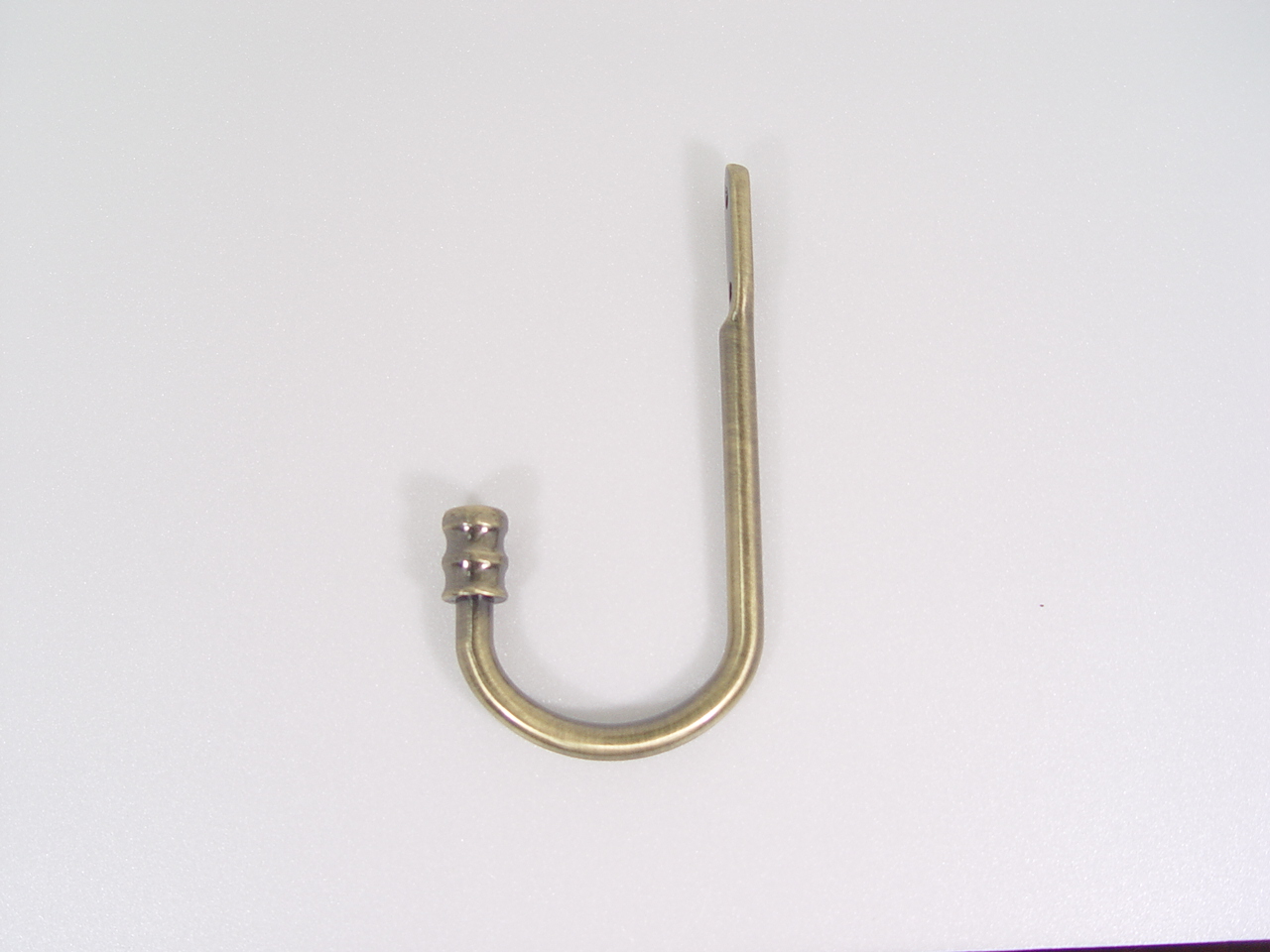 This holdback arm is made of bent iron pipe. It is suitable for bigger curtain finials 1" and 1 1/8". Shown is in ORB finish, it is also available in several colors. We can make size, finish you specify as well.